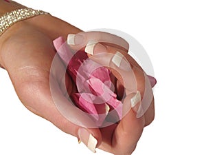 Krásná dívka jasný růžový kamínky. hřebík. krása