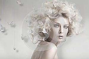 Portrét krásný žena móda kadeřavá vlasy